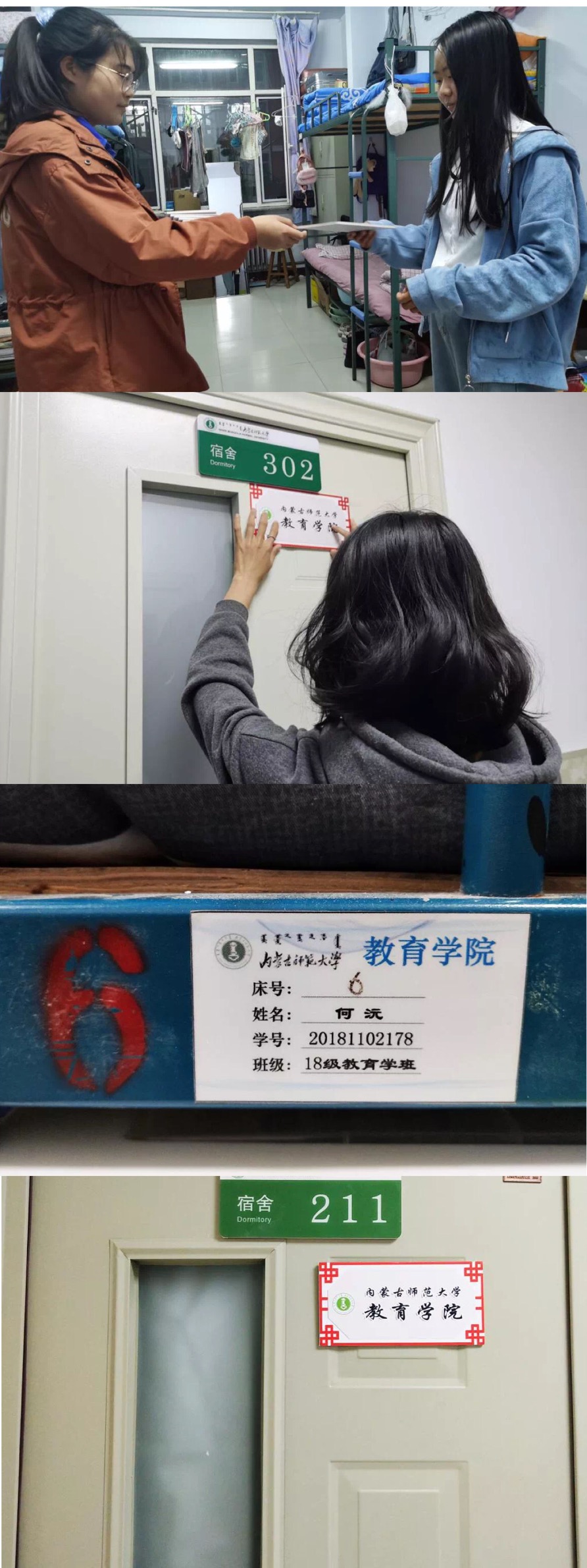 学生宿舍是学生学习、生活、休息的重要场所,是校园文明建设、培养良好校风和学风的重要阵地。新葡的京官网为将学生宿舍打造为标准规范且不失学院特色的“学生之家”,特为学生宿舍以及每位同学发放了充满学院特色的门牌和床卡。并且对学生的宿舍内务进行了严格检查,力求建设标准化学生宿舍。
