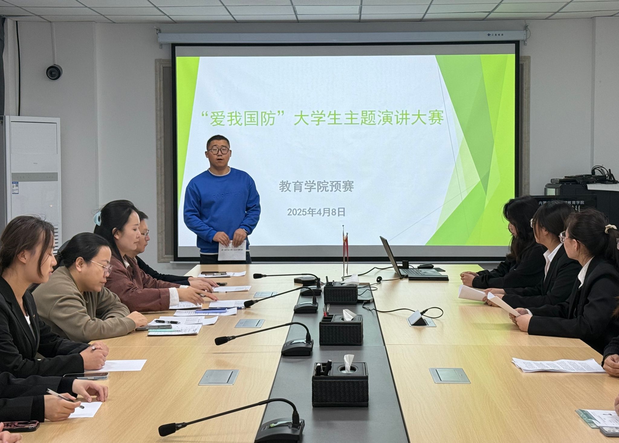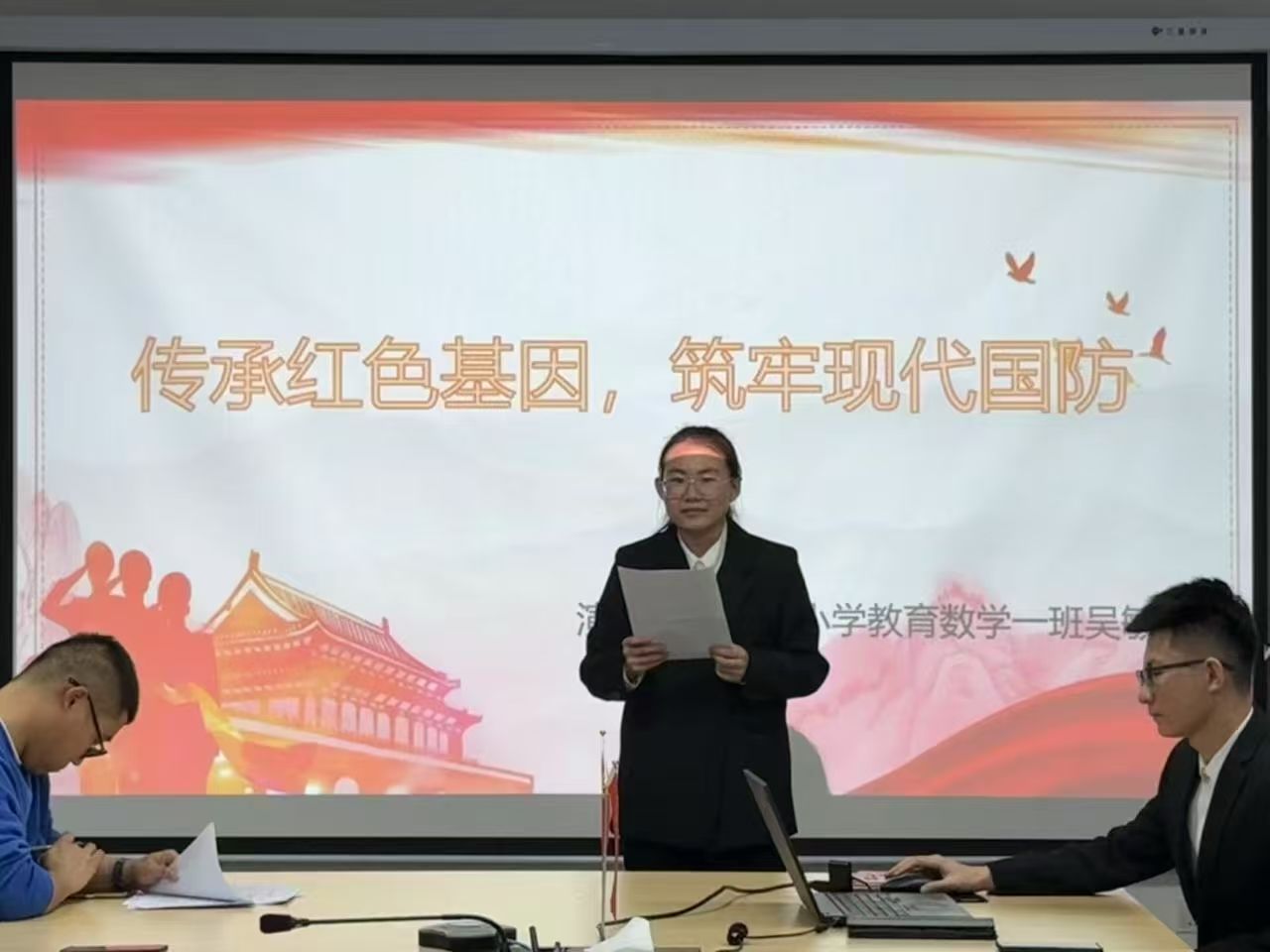 为深入学习领会党的二十大和二十届三中全会精神,贯彻落实习近平强军思想,不断增强国防教育的感召力和覆盖面,着力提升青年学生的国防意识和国防素养,大力营造支持国防建设、 热爱人民军队的校园文化氛围,4月8日,新葡的京官网在A406会议室举办“爱我国防”大学生主题演讲比赛。350vip8888新葡的京集团党委副书记、副院长斯琴满都呼,学生工作与就业办公室胡建芳、乌亚汗、马德广老师参加并担任评委,比赛由马德广老师主持。