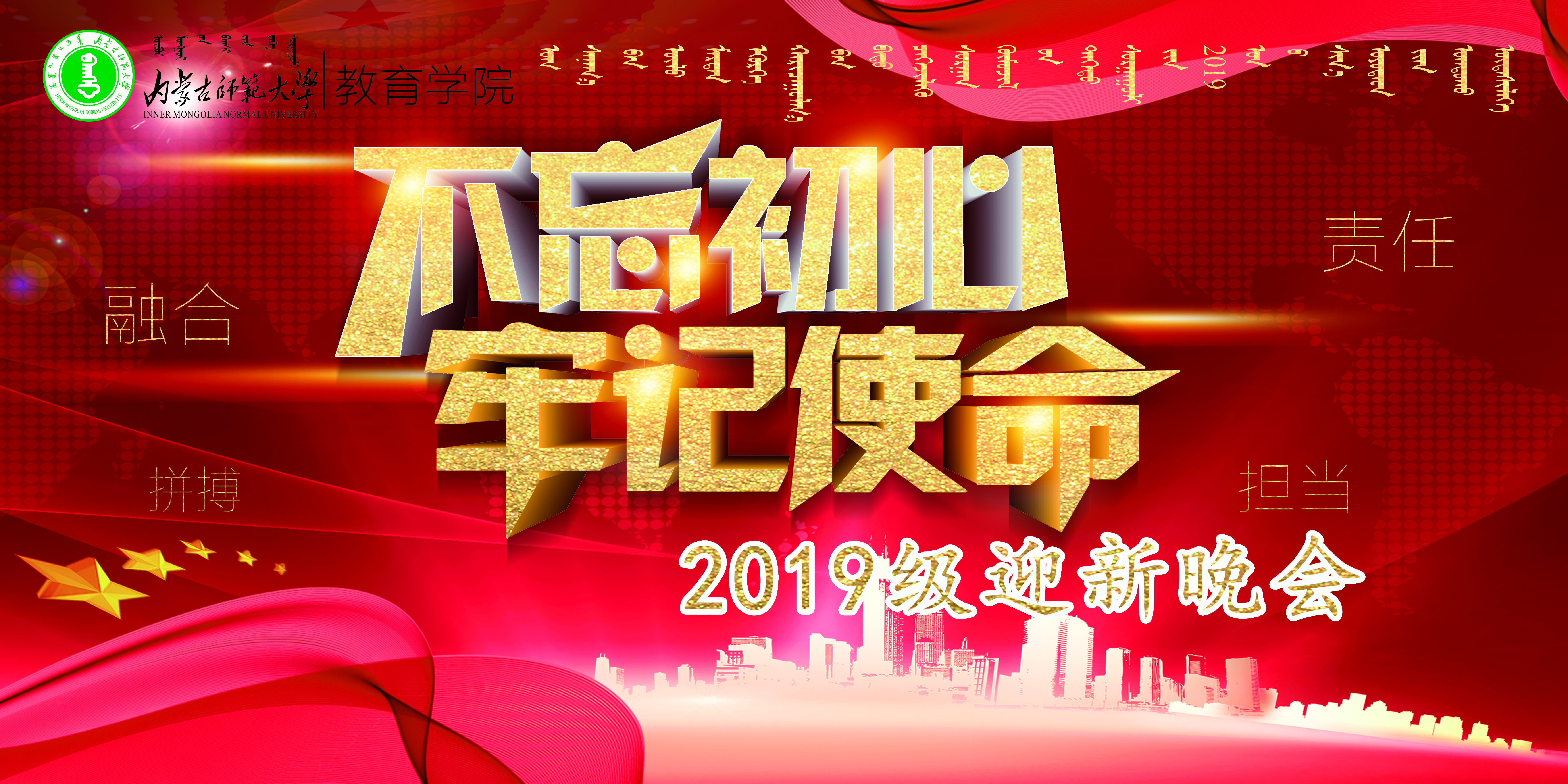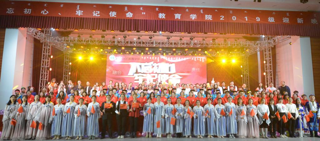 11月7日晚7点,新葡的京官网在350vip8888新葡的京集团盛乐校区学生事务中心二楼演播大厅隆重举办2019级“不忘初心、牢记使命”迎新晚会。350vip8888新葡的京集团学生工作处副处长宝贵,350vip8888新葡的京集团党委书记铁木尔、院长米俊魁、党委副书记兼副院长王利、副院长何士、副院长边琦、专职组织员张克玉、学院全体教师、2019级新生及16、17、18级部分学生出席了晚会。此次晚会也通过斗鱼平台进行现场直播。