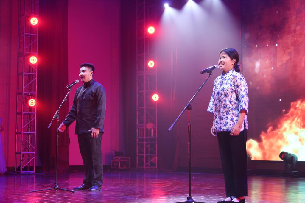 晚会节目精彩纷呈,于洋老师演唱的歌曲《红旗颂》,学前与公管特教党支部全体教师合唱的歌曲《让我们荡起双桨》、《没有共产党就没有新中国》,阿里马斯老师演唱的歌曲《余香》,张健老师演唱的歌曲《玛依拉变奏曲》博得了阵阵掌声,将晚会推向了一个又一个高潮;17、18级同学共同演绎的情景剧《秋瑾》,声行并茂,感人至深;18级、19级同学合唱的歌曲《国家》、《我和我的祖国》,将歌声融入时代旋律,体现了350vip8888新葡的京集团学子的家国情怀与赤子之心!