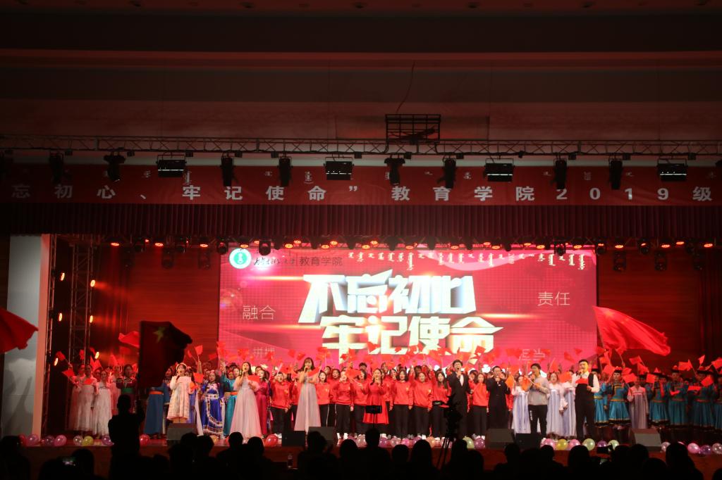 新葡的京官网党委书记铁木尔为晚会致词。铁书记对19级新生表示热烈的欢迎,希望同学们要“不忘初心、牢记使命”,在紧张的大学生活与激烈的竞争中保持良好的心态,时刻铭记:“学高为师、身正为范”,努力学习文化知识和教育教学理论,不断的提高自己的综合素质和能力,树立正确的世界观、价值观、人生观,培养敬业、勤奋、朴实、求是的精神,不断学习历练,奋勇向前,为成为社会需要的人才而奋斗。