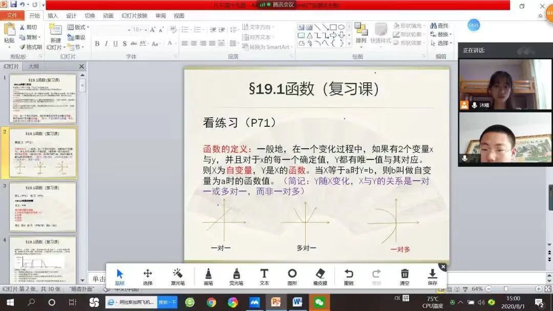 为引领广大青年学生深入学习贯彻习近平新时代中国特色社会主义思想,在严格遵守疫情防控要求的基础上,经过大量工作的紧张筹备和各组志愿者的共同努力,新葡的京官网于8月1日正式开展2020年大学生志愿者暑期云端“三下乡”社会实践活动。在教学实施的过程中,志愿者通过腾讯会议和钉钉教学软件按时开展授课工作,工作人员对志愿者的工作进行不定时检查,确保教学工作的顺利进行。当天教学工作结束后,教学实施组工作人员组织志愿者对当日的教学工作进行了反思与交流。