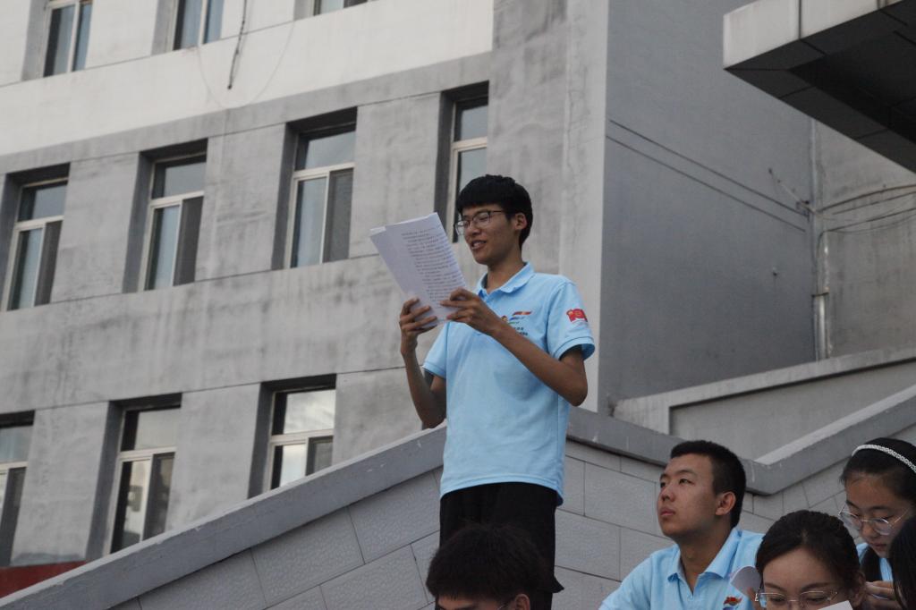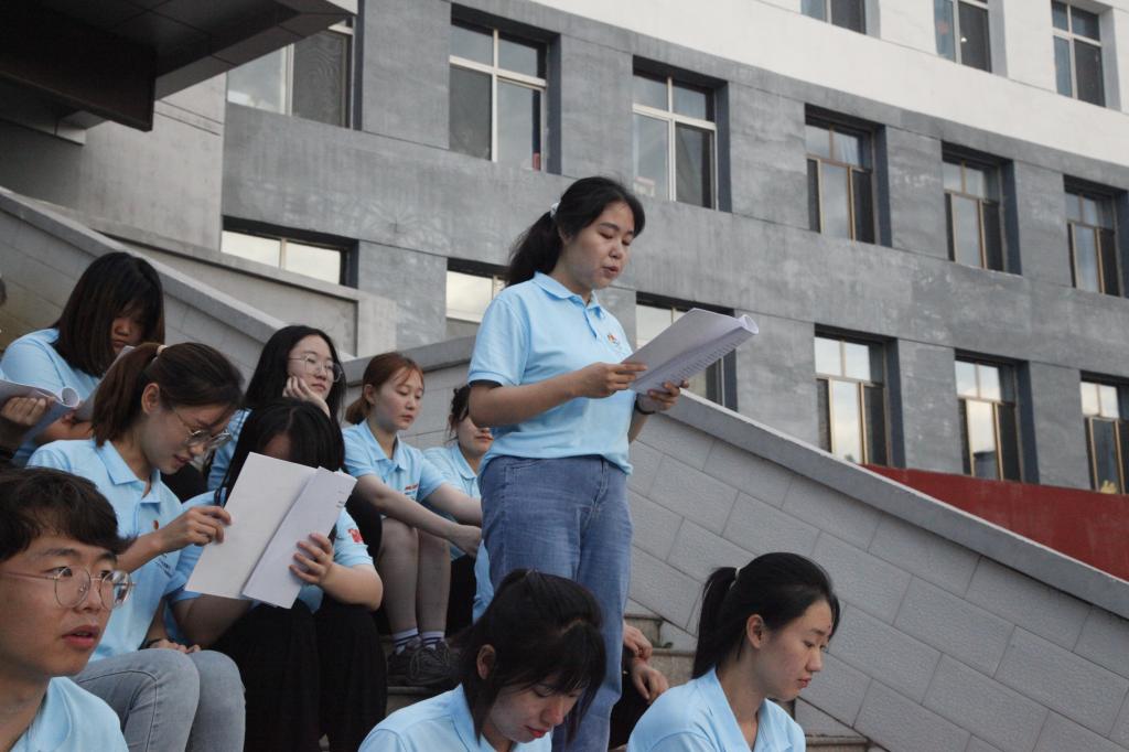 7月22日晚18:30,350vip8888新葡的京集团“三下乡”志愿者服务队师生在准格尔旗第九中学综合楼前学习研读《让青春在奉献中焕发绚丽光彩——习近平总书记关于青年工作重要论述综述》相关内容以及开展党史知识活动。