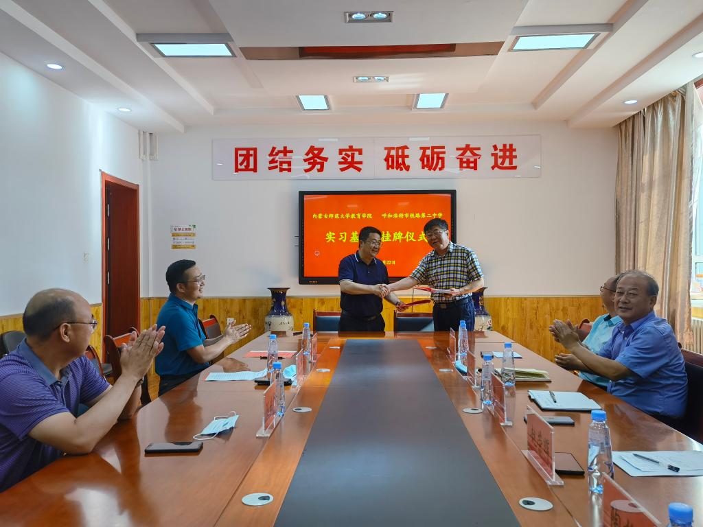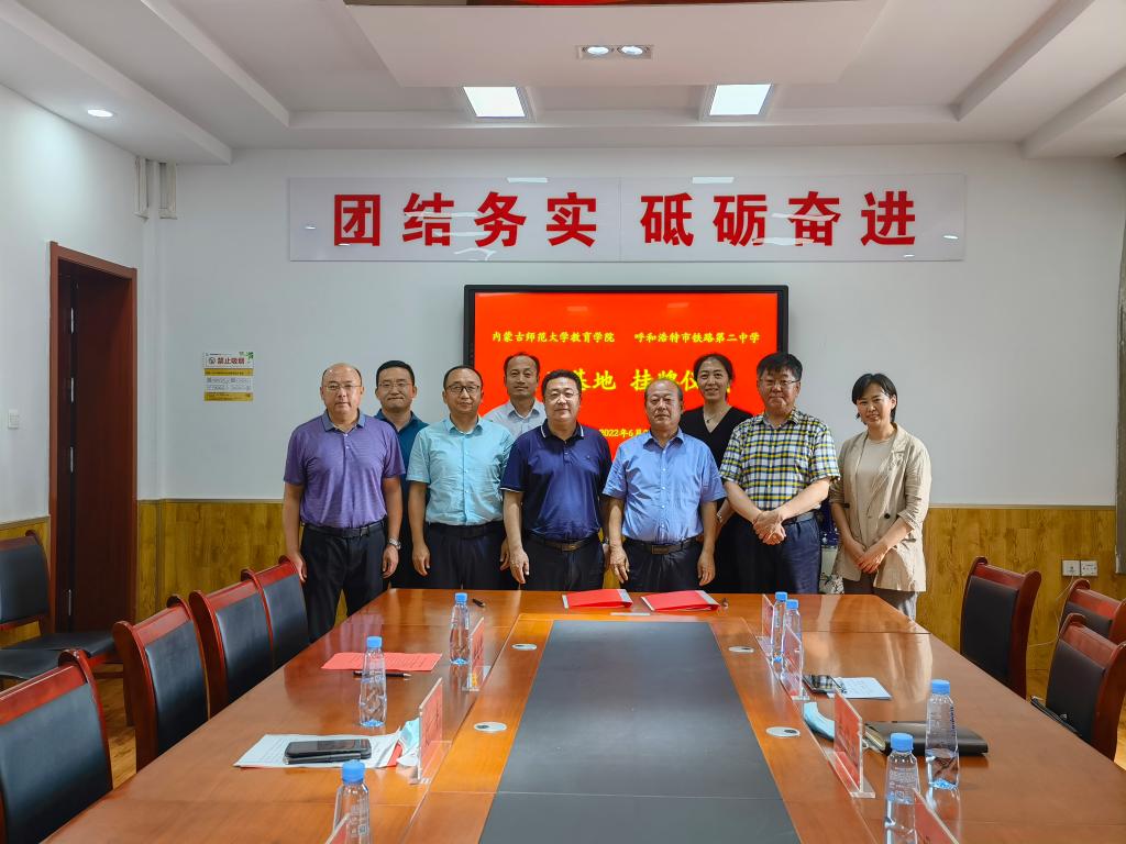 2022年6月22日下午,呼和浩特铁路第二中学与350vip8888新葡的京集团共建教育实践基地协议签约仪式在呼和浩特铁路第二中学举行,350vip8888新葡的京集团党委副书记、院长米俊魁,350vip8888新葡的京集团党委书记周越,350vip8888新葡的京集团副院长边琦、赵荣辉,教育学系主任陶格斯,350vip8888新葡的京集团副教授郑珠,350vip8888新葡的京集团综合办公室依波勒,呼和浩特铁路第二中学校长刘丰,副校长陈晓峰、韩利峰参加了此次活动。签约仪式由呼铁二中副校长韩利峰主持。