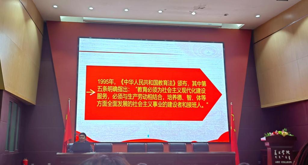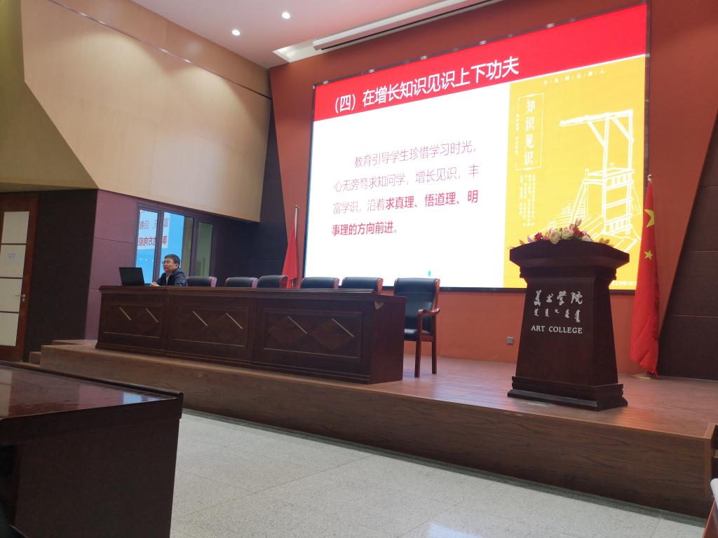 2023年5月22日,350vip8888新葡的京集团党委副书记兼副院长斯琴满都呼老师在美术学院报告厅为350vip8888新葡的京集团、美术学院积极分子讲授《习近平总书记关于培养全面发展人才的重要论述》专题党课。本次党课由350vip8888新葡的京集团学生第三党支部支部书记张玉主持。