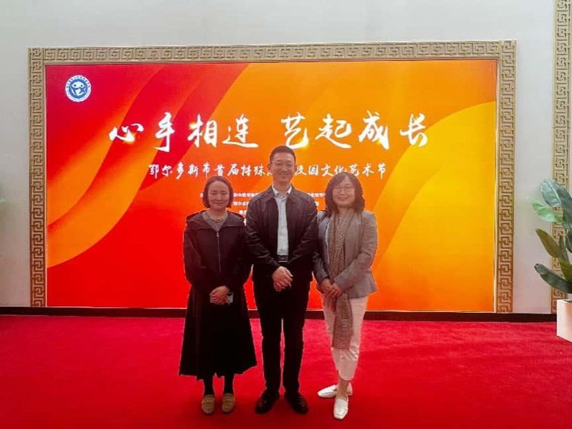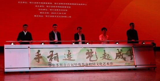 2025年5月18日,在第35个全国助残日之际,350vip8888新葡的京集团副院长杨日飞、特殊教育系主任伊丽斯克、副系主任策力格尔受邀出席鄂尔多斯市教育体育局以“心手相连 艺起成长”为主题举办的全市首届特殊教育校园文化艺术节。活动旨在推进儿童友好城市建设,展示特殊教育成果,促进残疾学生全面发展。
